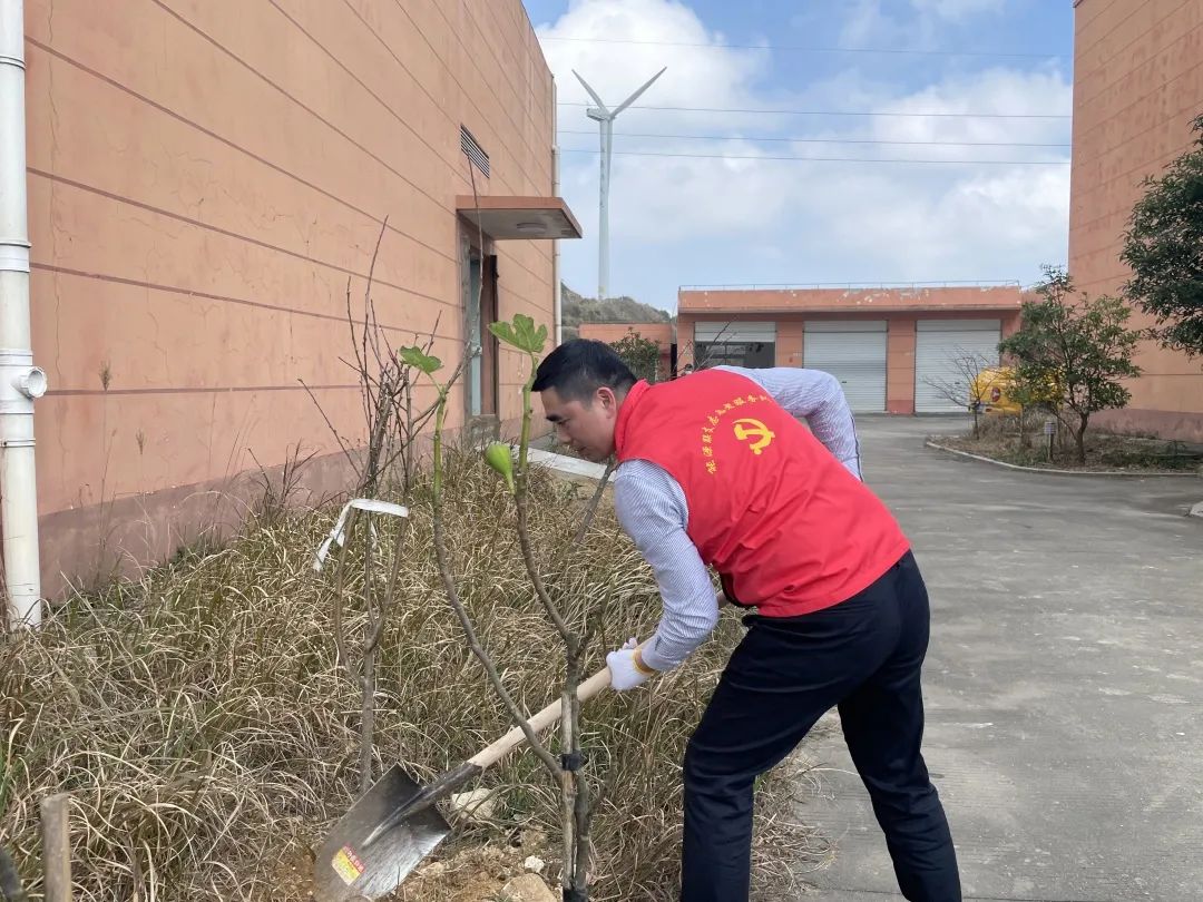 線下,能源公司的黨工團(tuán)志愿者們帶上樹(shù)苗、扛起鋤頭,奔赴平陽(yáng)西灣及蒼南霞關(guān)兩個(gè)風(fēng)電場(chǎng),在暖陽(yáng)下,挖坑、栽樹(shù)、壓土、澆水...... 各個(gè)環(huán)節(jié)銜接有序,配合默契,認(rèn)真地完成每一道工序,一棵棵新苗就穩(wěn)穩(wěn)地在土里扎下了根,為風(fēng)電場(chǎng)的春天又增添了一抹新綠。